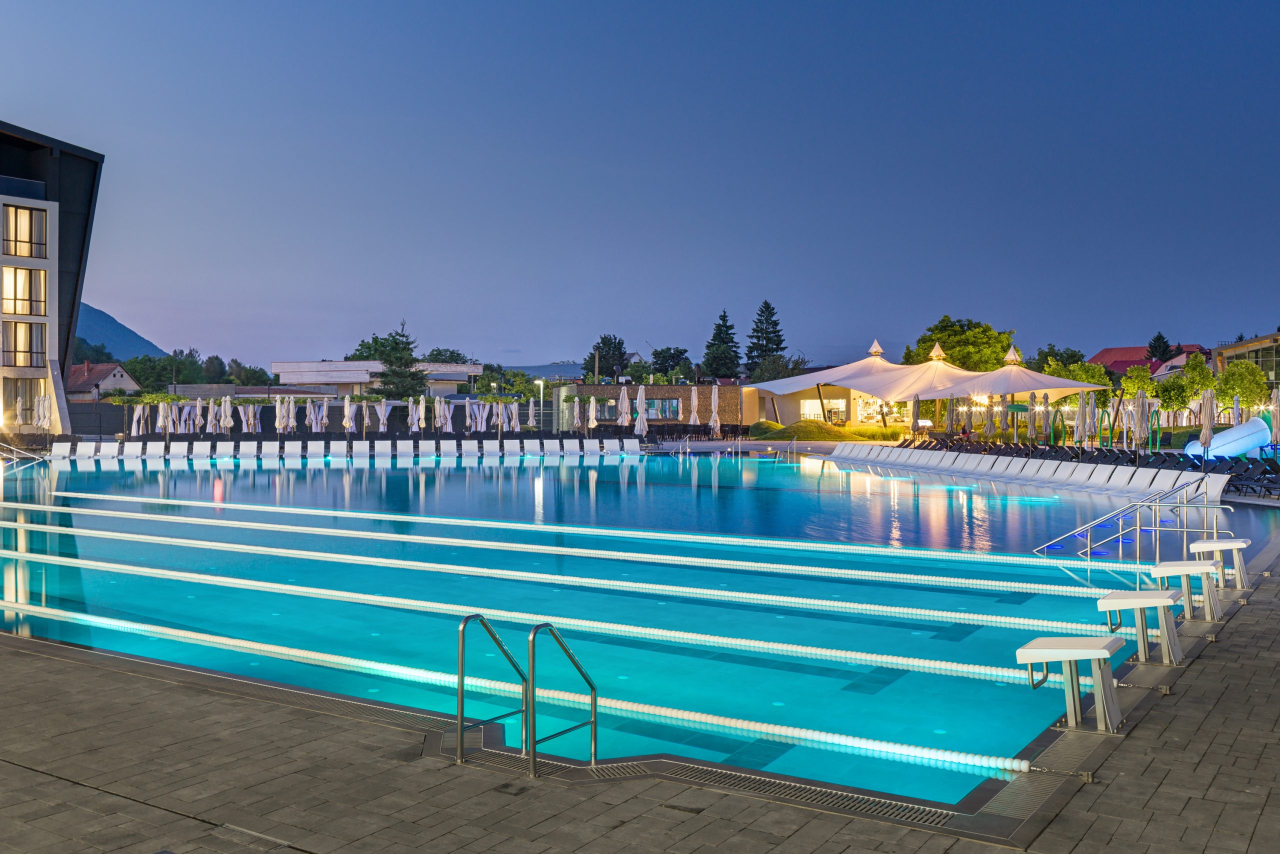 Найбільший мінеральний басейн Закарпаття — вражаючий простір поєднаних чаш із відокремленим спортивним басейном на 4 доріжки (11 × 25 м), зоною для аква-аеробіки та вільного плавання, а також водними лежаками — шезлонгами, розташованими просто у воді.