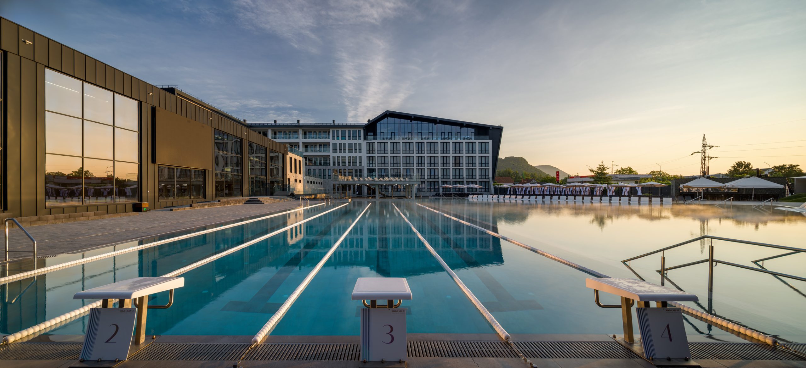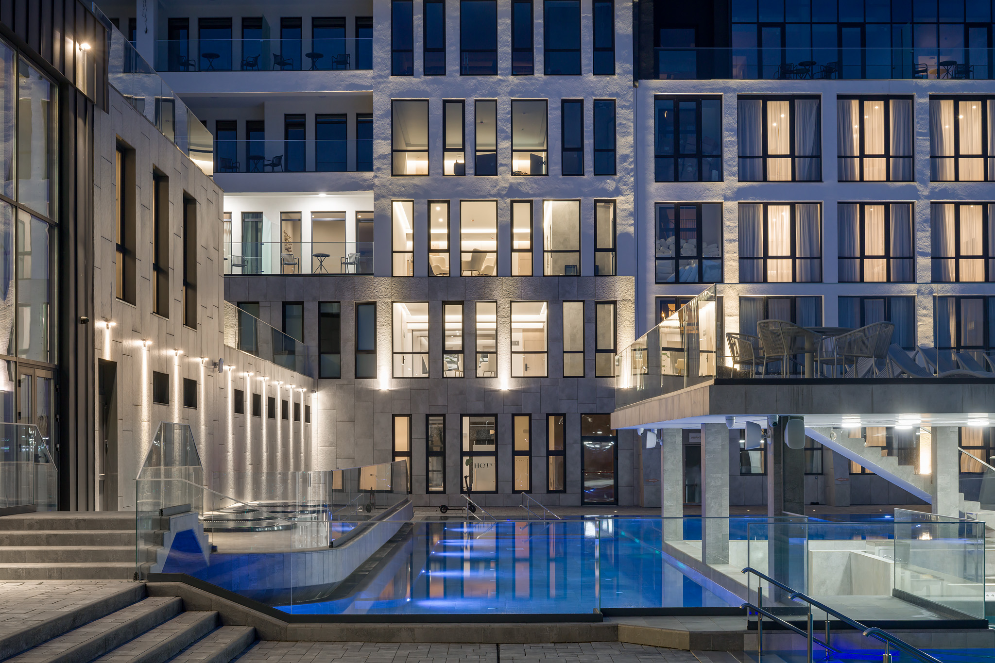 Внутрішній басейн комплексу здобув 2 місце на престижному архітектурному конкурсі, підтверджуючи визнання естетики RIKKA на професійному рівні.