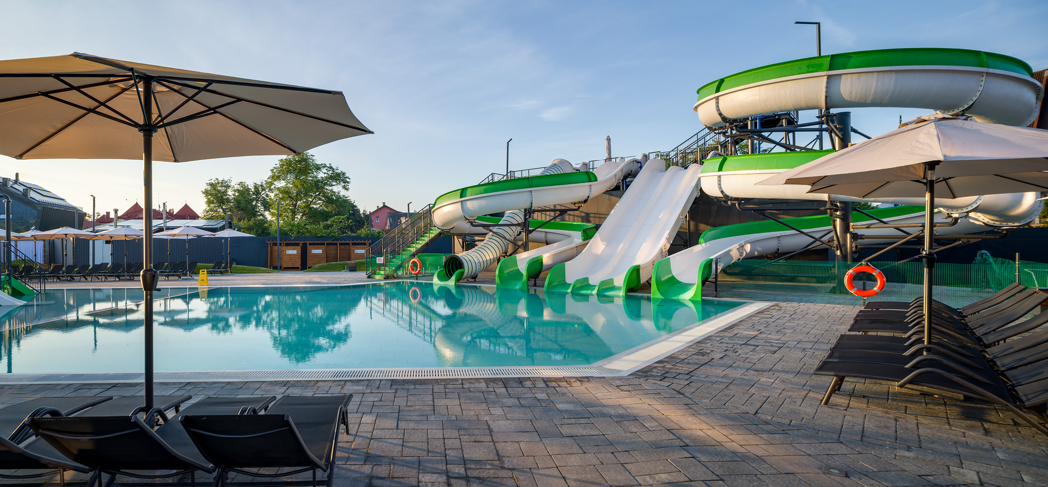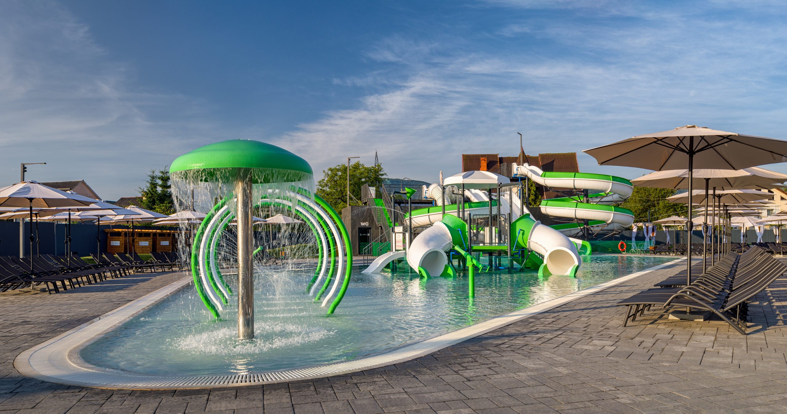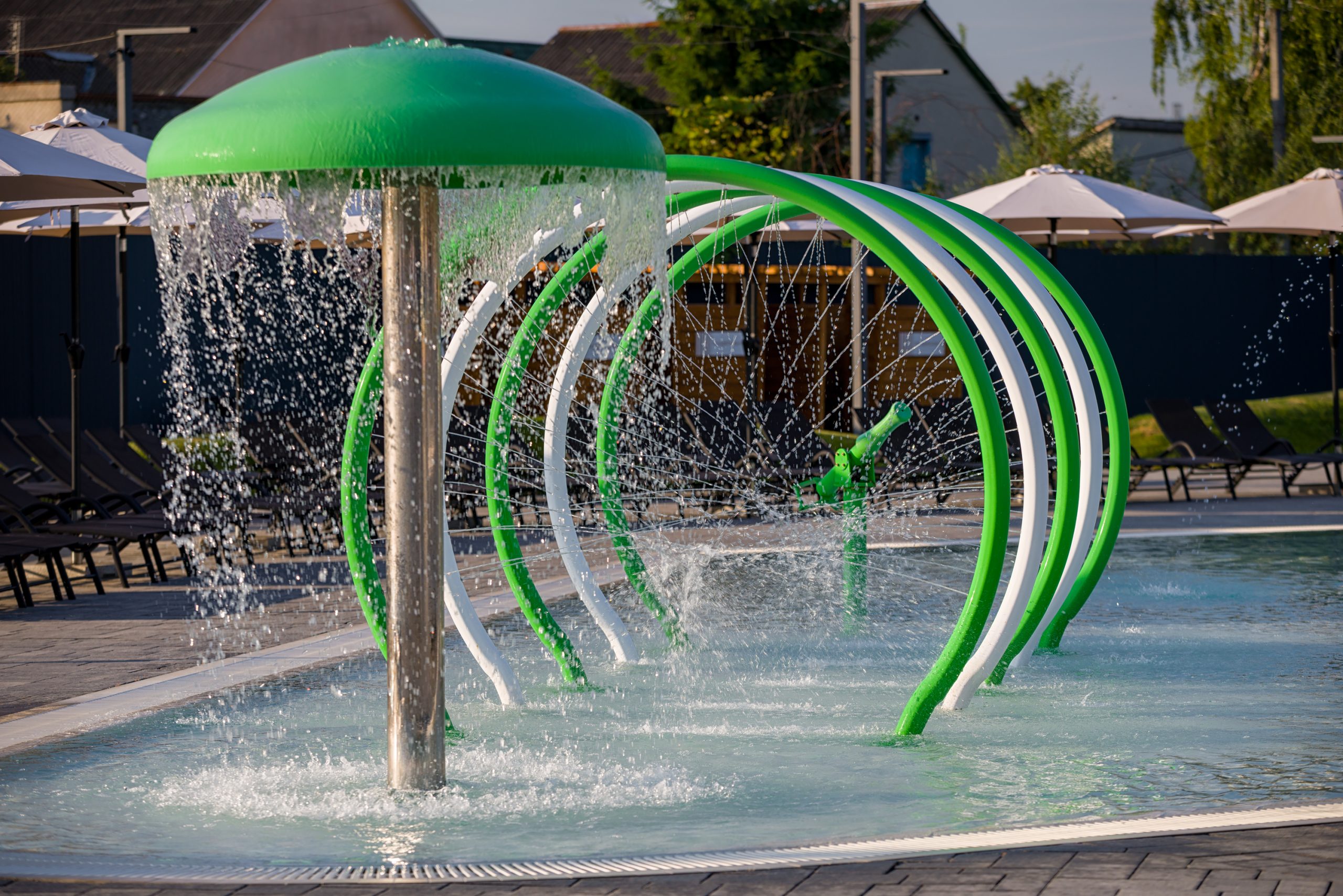 У складі комплексу — дитячий басейн із гірками для дітей від 6 років і спліт-зона для найменших гостей від 2 років (у супроводі дорослих) з інтерактивними водяними арками, гарматами, гірками та фонтанами.