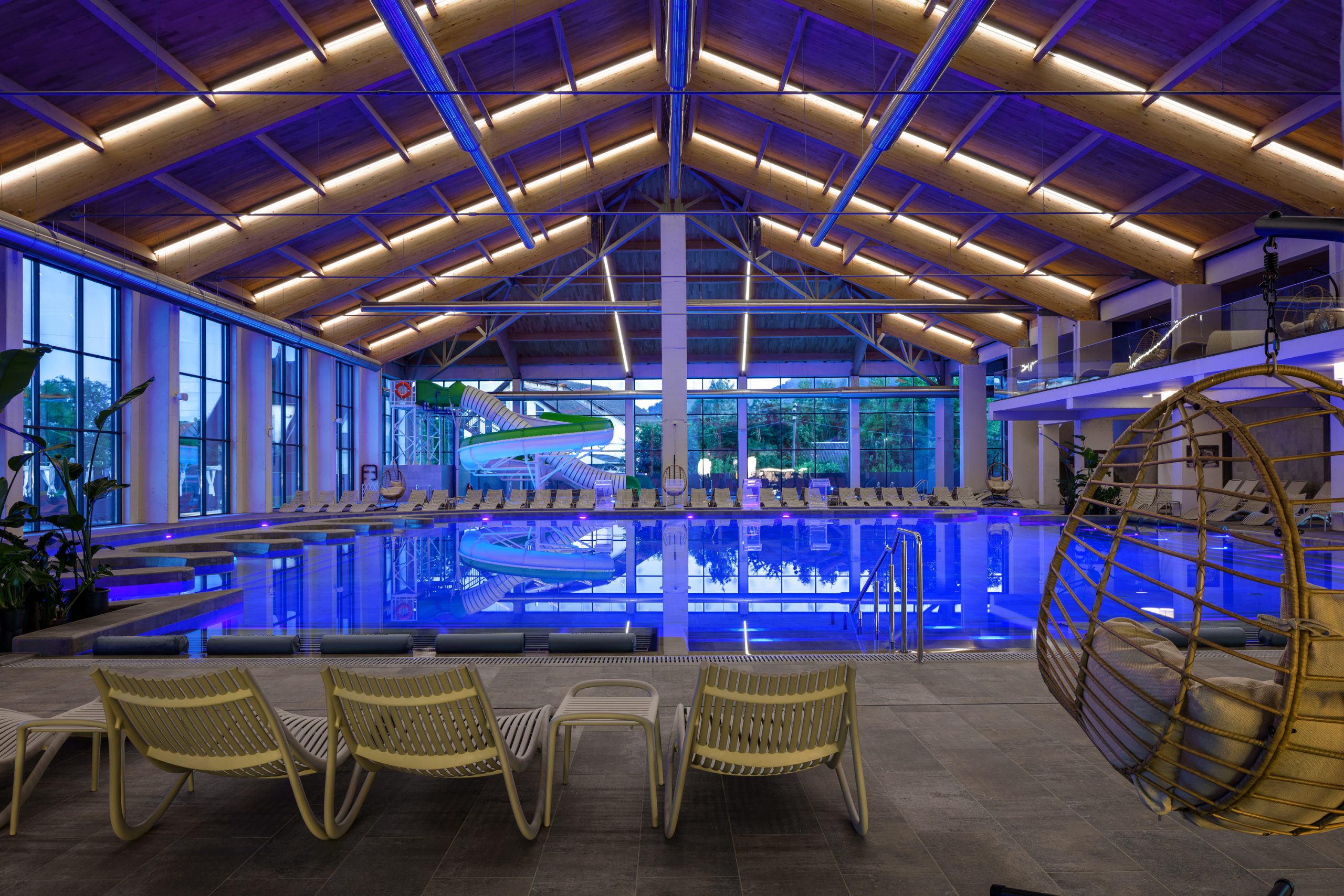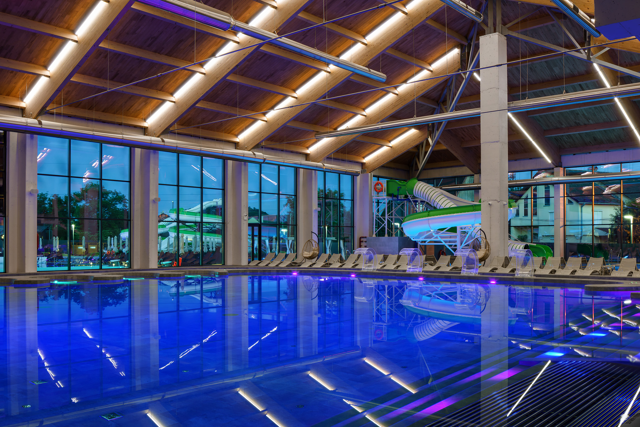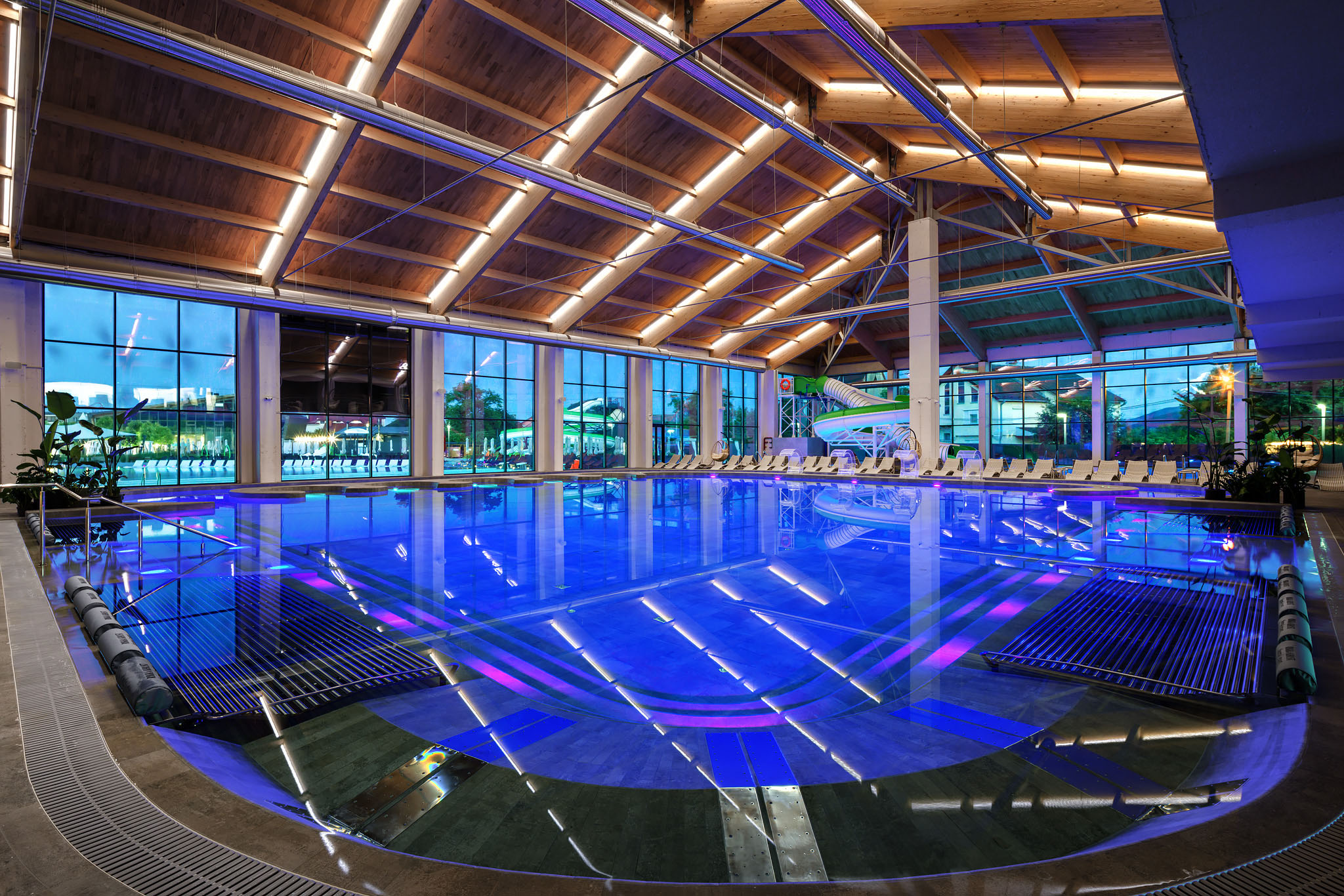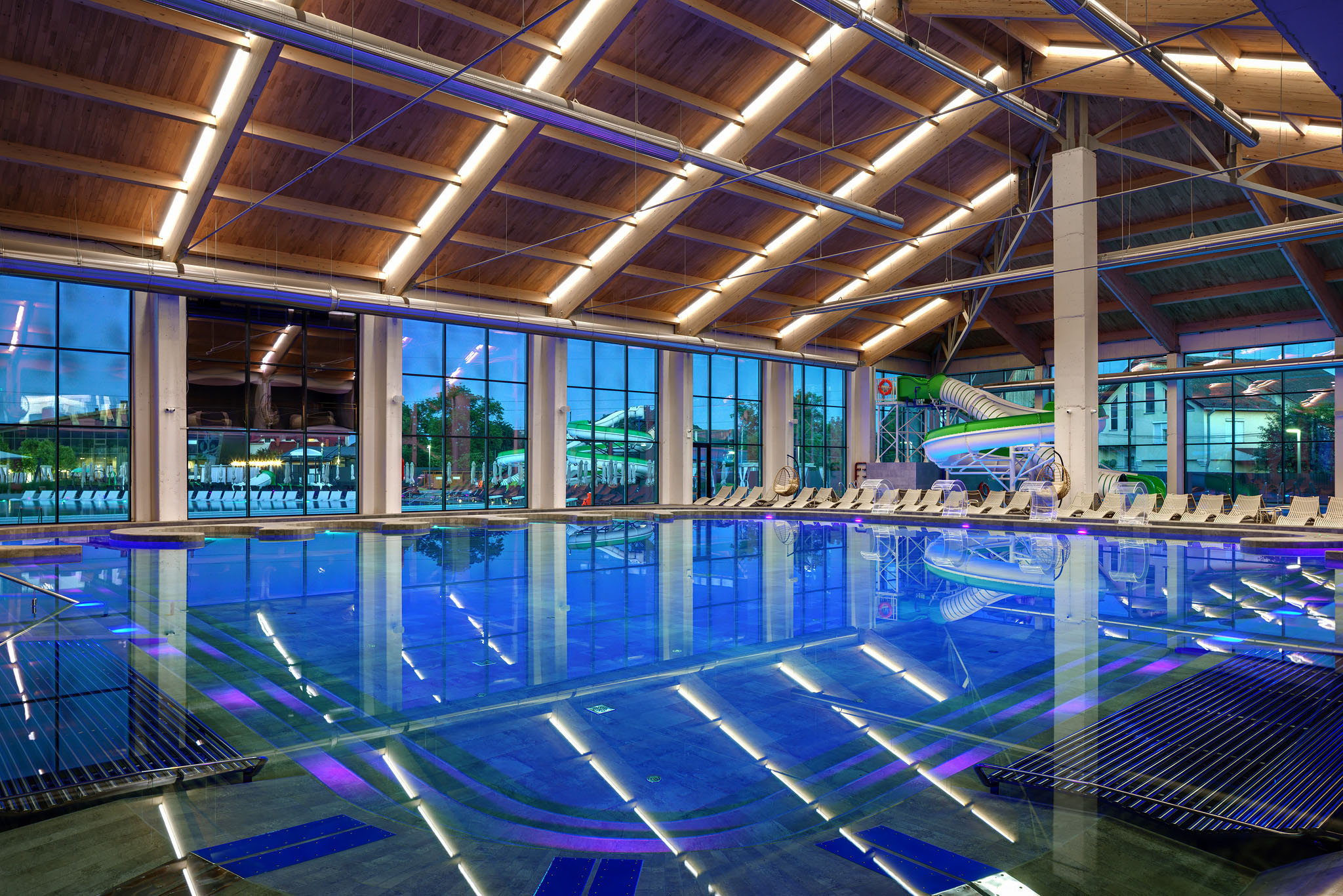 Внутрішній басейн із розділеними зонами для плавання та активних розваг.